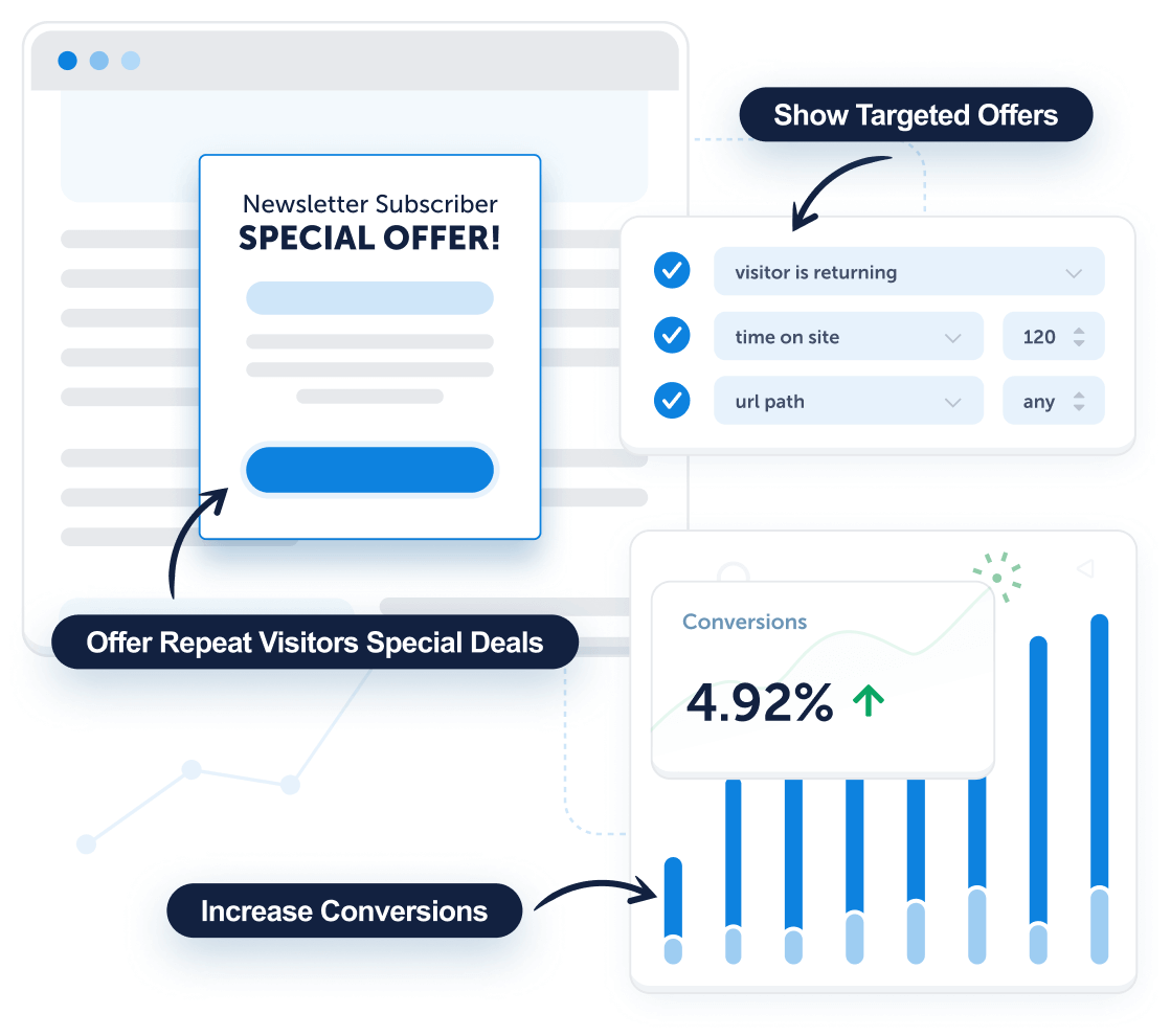 - Show targeted offers based on what visitors have already seen or engaged with on your site.