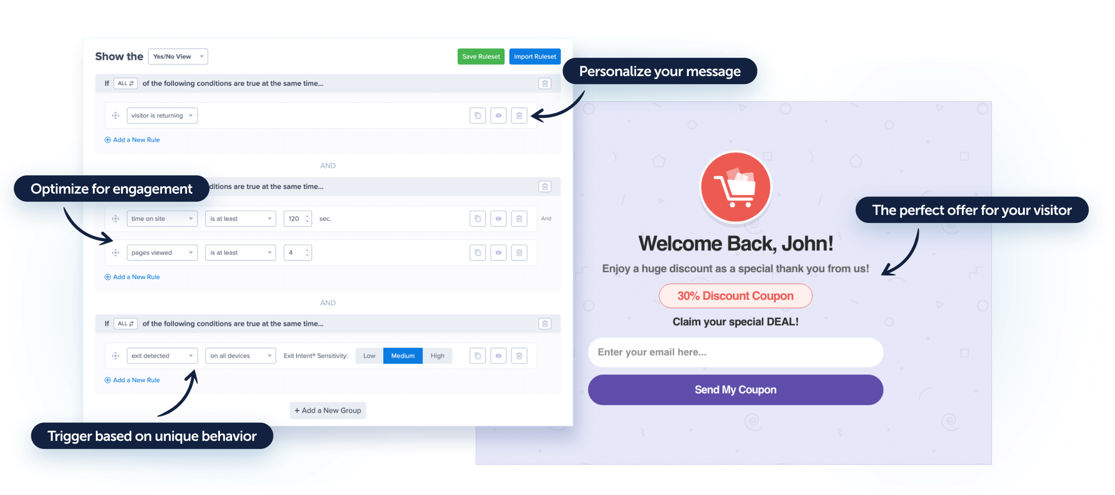 Personalize your campaigns based on your visitor’s behavior to maximize conversions and sales.
